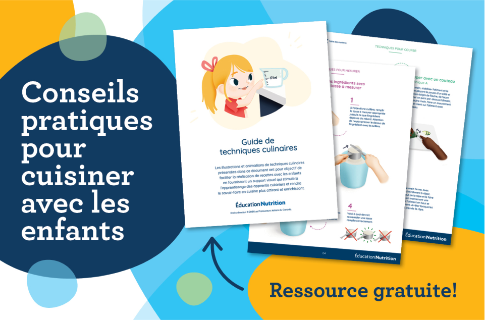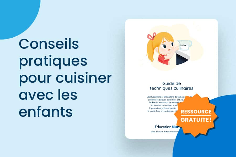 Si vous souhaitez montrer des techniques culinaires aux enfants, consultez gratuitement la ressource intitulée Guide de techniques culinaires, ci-dessous.