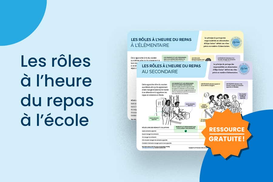 *Ellyn Satter Institute. 2019. The division of responsibility in feeding. ellynsatterinstitute.org. Consulté le 22 janvier 2021.